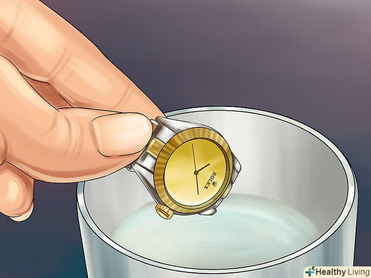 Перевірте водонепроникність годинника. вірним способом для визначення оригінальних годин є перевірка на водонепроникність. Всі Годинники Rolex ідеально герметичні, якщо ваш годинник пропускає навіть трохи води, то це не Rolex. Для перевірки опустіть годинник в стакан з водою, потримайте декількох секунд, а потім вийміть. Справжні Rolex будуть продовжувати нормально працювати і на внутрішній частині скла не з'являться крапельки води.- Зрозуміло, що якщо ваш годинник не фірмові, такою перевіркою можна їх зіпсувати. В такому випадку вам доведеться нести їх до годинникаря або ж купити нові. Якщо не хочете таких наслідків, не проводите перевірку водою.