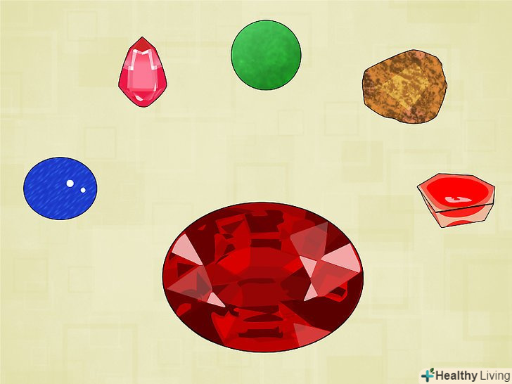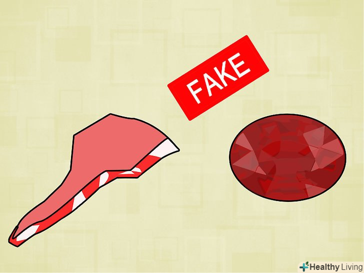 - Композитні рубіни-це зроблені з рубінів і скла камені. Такий спосіб допомагає збільшити розмір каменю для більш високої продажної ціни. Будьте обережні! Комбіновані рубіни часто продають за ціною справжніх. [11]