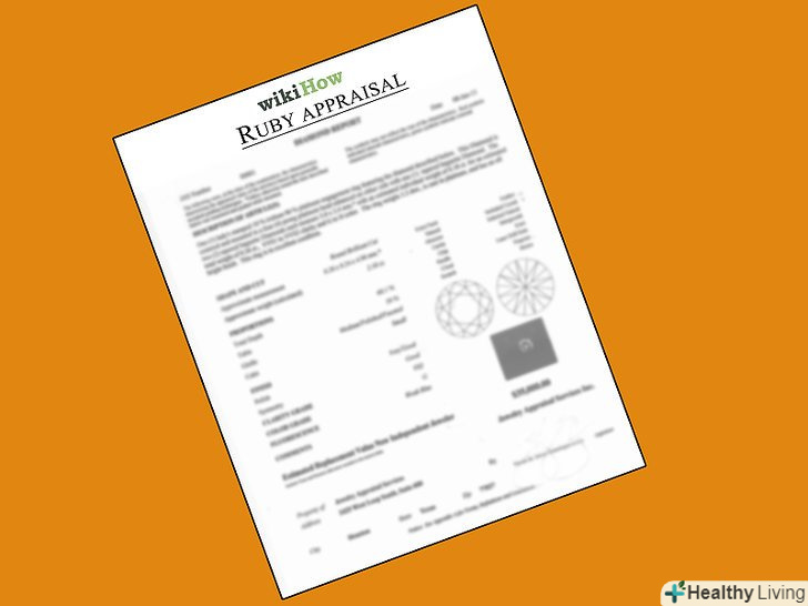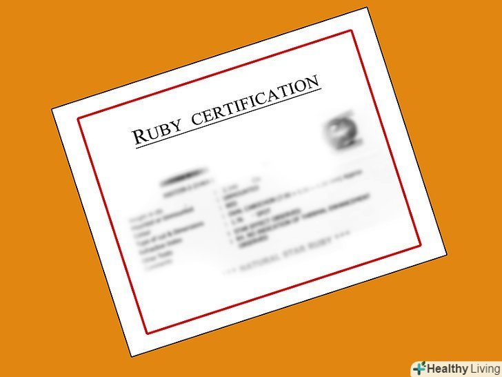 Зробіть сертифікат автентичності. ліцензований ювелір може видати вам офіційне підтвердження справжності вашого Рубіна. Цей документ є доказом справжності каменю, в разі якщо ви коли-небудь захочете продати його. Зробіть копію сертифіката і зберігайте його в надійному місці. [13]- Зробіть сертифікат каменю, щоб застрахувати його. При втраті Рубіна ви зможете отримати компенсацію, проте в такому випадку вам будуть потрібні докази втрати.