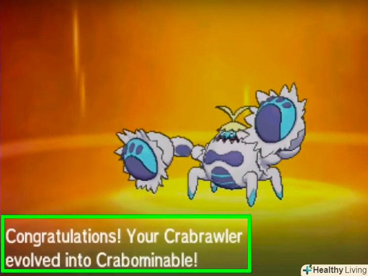 Рушайте на гору Ланакила (Mount Lanakila).Прокачайте тут Краб, після чого він еволюціонує в Краб. Це спрацює на будь – якому рівні, крім 100, так що другий рівень-це мінімальний рівень Крабомінабла, що ви можете отримати (якщо розведете Крабравлера 1 рівня, а не зловите, як було описано в попередніх кроках).