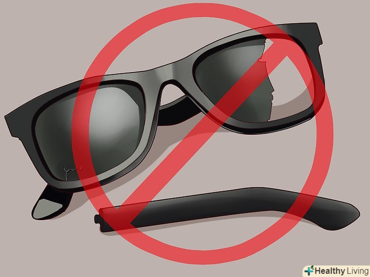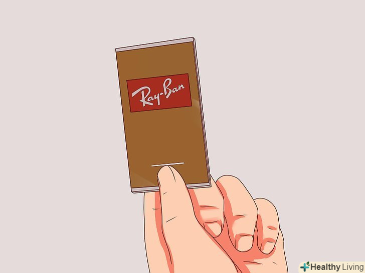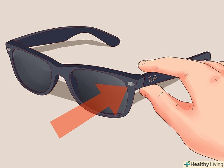 Перевірте, чи зроблені лінзи зі скла чи ні. зніміть свої окуляри і подивіться на них спереду. Злегка постукайте нігтем по лінзах. Якщо вони виглядають, відчуваються і "звучать" як справжнє скло, то це хороша ознака – у багатьох Ray-Ban використовується справжнє скло для лінз. Не скляні лінзи не обов'язково означають підробку ваших окулярів, але якщо тільки вони не виглядають занадто дешевими, каламутними або поганими за якістю.- Якщо ваші лінзи не схожі на скляні, не панікуйте – у деяких моделей Ray-Ban використовуються лінзи не зі скла, але вони все-таки виготовляються з матеріалу вищої якості. [3] З'ясуємо ситуацію, ідеально ясні скляні лінзи є ознакою того, що ваші окуляри, цілком можливо, справжні, але лінзи не зі скла не обов'язково означають протилежне.