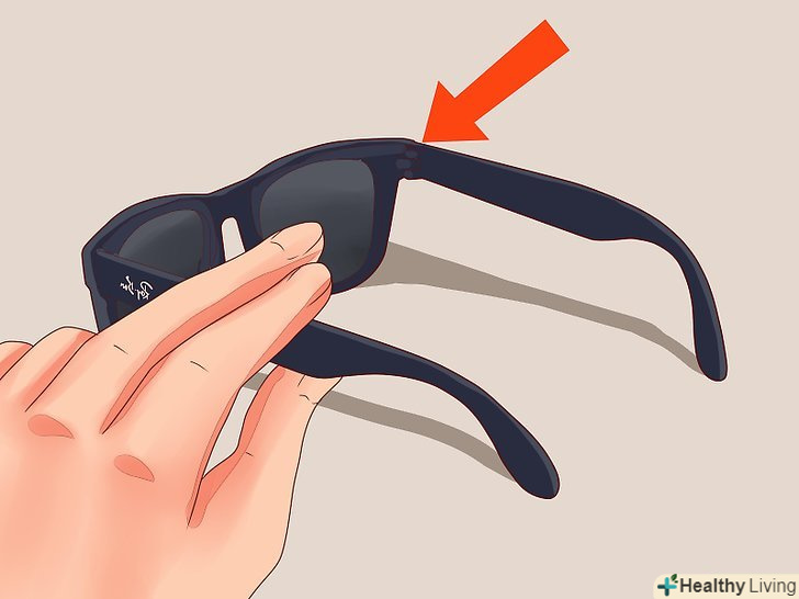 Подивіться на якість металевих петель. розкрийте окуляри і подивіться на них ззаду. Петлі, розташовані в куточках окулярів, повинні бути з високоякісного металу. Вони повинні бути акуратно прикріплені болтами до окулярів, а не приклеєні або дотримуватися дешевим пластиком – як помічалося раніше, це ознаки дешевих виробничих процесів на швидку руку.- Багато – але не всі – окуляри Ray-Ban мають унікальні металеві петлі, які містять сім зчеплених разом металевих «зубців». [4] якщо вони є, то це хороший знак, але їх відсутність не повинно ставати причиною для занепокоєння, так як ще іноді використовуються і інші типи високоякісних металевих петель (наприклад, для Ray-Ban's Aviators і Clubmasters).