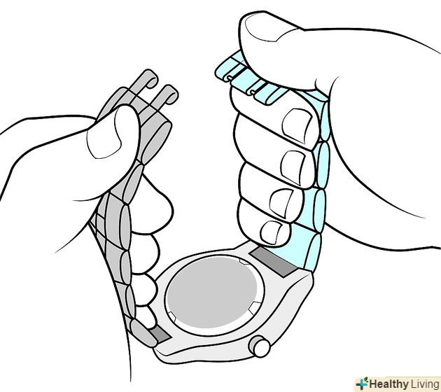 Виміряйте довжину ремінця. З'єднайте один кінець браслета з його корпусом, потім оберніть його навколо зап'ястя. Підрахуйте, скільки ланок накладається один на одного, додайте до цього числа ще одне — і ви отримаєте кількість сегментів, які потрібно прибрати. На такому годиннику ви можете прибирати сегменти з будь-якої частини браслета. [8]