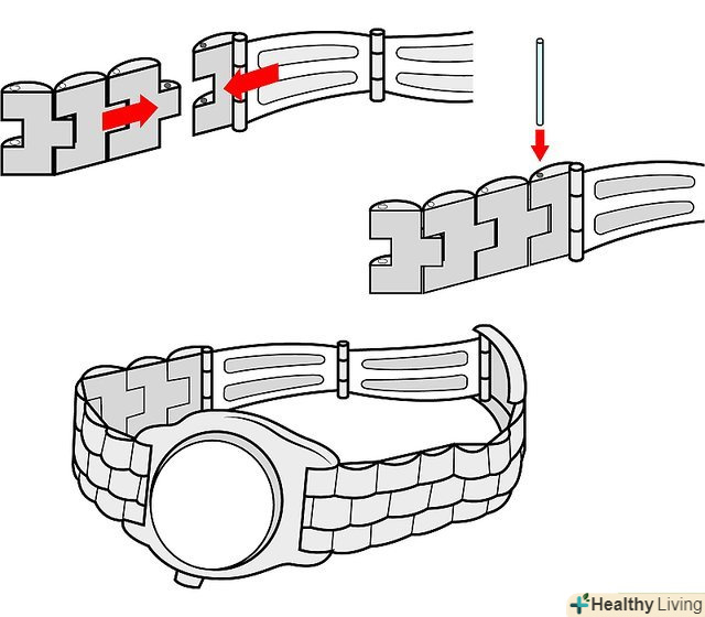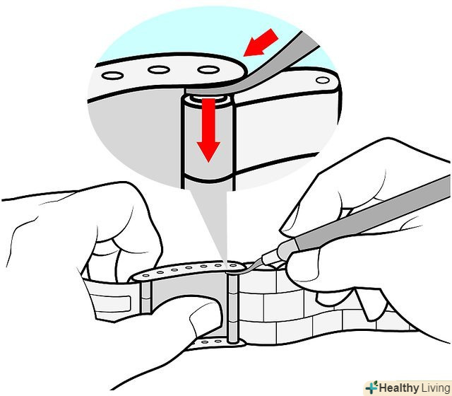 Акуратно змістіть сегменти. коли ланки роз'єднані, їх можна витягувати. Постарайтеся робити це дуже акуратно. Виймайте стільки сегментів, скільки необхідно. [5]- Зберіть ремінець заново. щоб зібрати браслет, робіть все те ж саме, тільки навпаки. [5]