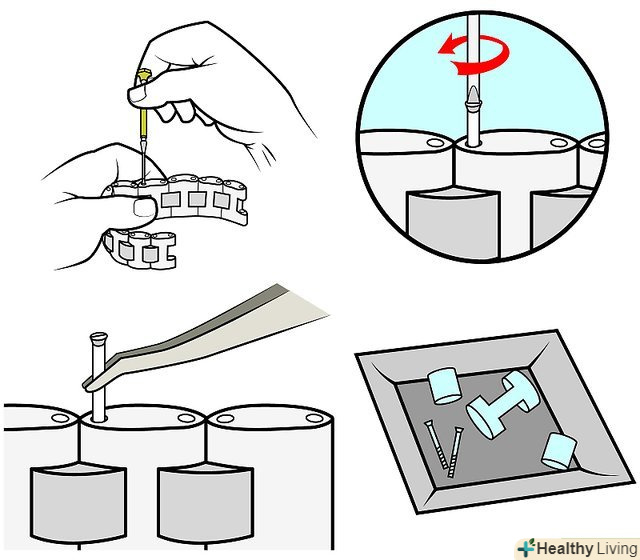 - Візьміть гвинтик пінцетом або плоскогубцями, щоб він не впав. Покладіть його в надійному місці, тому що він ще знадобиться для складання годин.