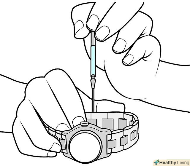 Слідкуйте за маленькими металевими наконечниками. у деяких наручних годинниках є маленькі металеві наконечники в центрі з'єднання сегментів, які будуть видалені разом з віссю. Вони можуть впасти на підлогу або робочу зону, тому стежте за ними. Пізніше вони вам знадобляться. [3]