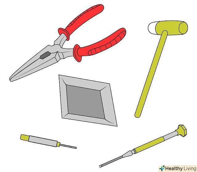 Візьміть необхідні інструменти. щоб правильно вкоротити браслет, вам знадобляться певні інструменти. А саме: [4]- Тонкий загострений предмет, як знімач пружин або витончене шило;