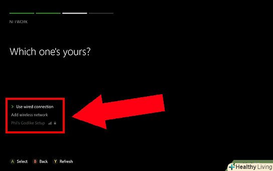 Виберіть параметри мережі.ви можете вибрати дротове з'єднання або WiFi (бездротове) з'єднання. Для стабільної роботи краще вибрати дротове з'єднання.- При виборі бездротового з'єднання вам необхідно буде надати пароль свого роутера для доступу до нього.