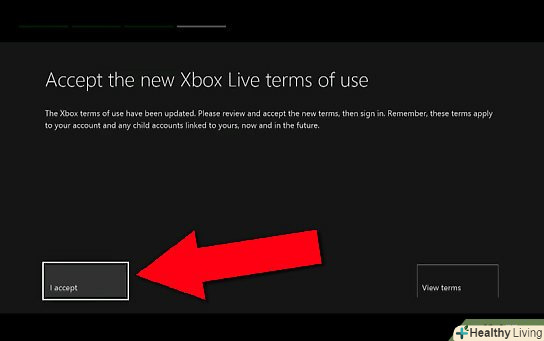 Прийміть ліцензійну угоду Xbox Live.Прочитайте та погодьтеся з ліцензійною угодою Xbox. Після цього ви отримаєте право на захист особистих даних