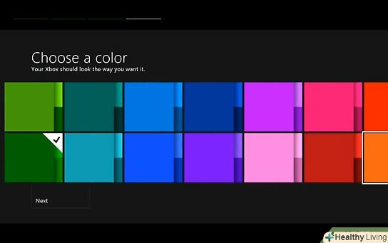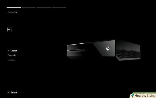 Дотримуйтесь інструкцій, вказаних на екрані.перше, що ви побачите на екрані, буде логотип Xbox One на зеленому тлі. Зачекайте трохи, поки консоль обробить інформацію, щоб потім надати вам інструкції з початкового налаштування.- У першій інструкції, щоб продовжити, Ви повинні будете натиснути кнопку A. ви побачите цю інструкцію у вигляді контролера на екрані. Після цього, Xbox One вперше привітає вас.