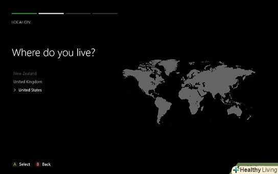Вкажіть свою країну.залежно від вибраної мови, Xbox One надасть вам варіанти вибору вашої країни.