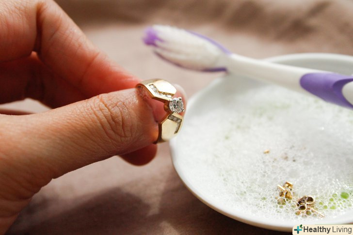 Замочіть прикраса протягом декількох хвилин, а потім вимийте його за допомогою щітки. стара зубна щітка ідеально підійде. Переконайтеся, ви промили місця під каменем, тому що там можуть збиратися бруд і жири.