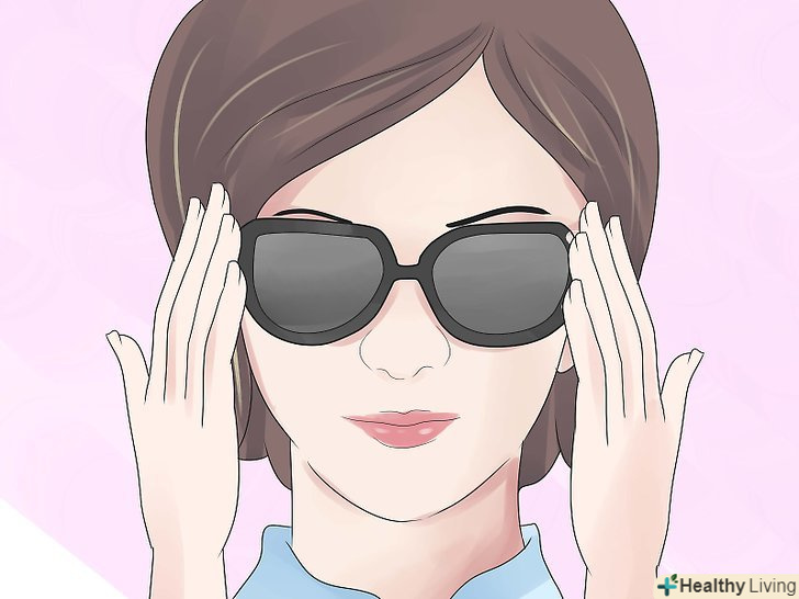 Переконайтеся, що сонцезахисні окуляри добре сидять. приміряйте їх і переконайтеся, що вони не затискають вашу голову. Навантаження повинна рівномірно розподілятися між вашими вухами і носом, і ваші вії не повинні торкатися оправи або скла.
