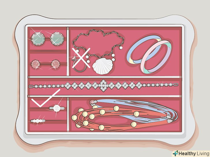 - Якщо ви щедро користуєтеся лосьйоном, він може накопичуватися на прикрасах і робити їх тьмяними. Знімайте прикраси, перш ніж наносити на шкіру лосьйон і втирати його, і тільки потім надягайте прикраси назад.