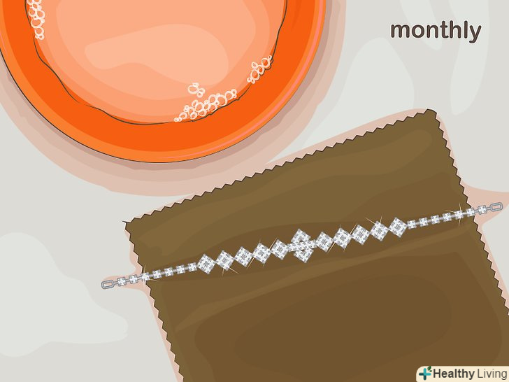 - Огляньте прикраса на предмет хитких каменів і зламаних застібок. перш ніж приступати до роботи, візьміть прикраса в руки і ретельно його огляньте. В першу чергу, перш ніж занурювати прикраса в воду, необхідно полагодити хиткі камені і зламані елементи, інакше можна випадково що-небудь втратити. [1]