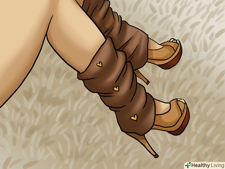Носіть гетри з взуттям, колготками або лосинами. Якщо на вулиці 40 С, а ви просто вмираєте від бажання надіти це плаття, гетри і лосини (або лосини) є відмінним варіантом. Чорні колготки і чорні гетри завжди розглядаються як класичне поєднання. Це як у чоботях, але набагато зручніше!- Переконайтеся, що вони трохи прикріплені, особливо навколо щиколотки. Вони не повинні бути низько спущені, створюючи вигляд, що волочаться по землі, але і не повинні бути дуже натягнуті по всій нозі.