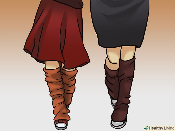 Носіть гетри так, щоб вони виглядали з під ваших чобіт або черевик на відстані 5-15 сантиметрів зверху. це буде дуже добре. [1]- Не переживайте з приводу кольору. Різні відтінки коричневого і бежевого будуть виглядати абсолютно гармонійно. Це не приверне зайвої уваги до вас.