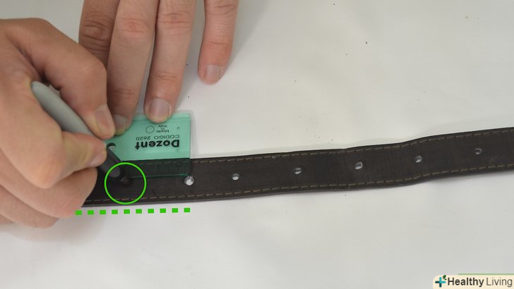 - Позначте точку розташування нового отвору. скористайтеся лінійкою або рулеткою, щоб виміряти відстань між наявними отворами, а потім відкладіть цю ж відстань після останнього отвору ременя, щоб відзначити точку розташування нового отвору. Щоб мати візуальний орієнтир для роботи, відзначте цю точку перманентним маркером.