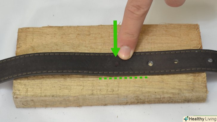 Зафіксуйте ремінь. скористайтеся якимись важкими предметами, щоб придавити обидва кінці ременя таким чином, щоб ділянка з наміченою точкою розташувався на дерев'яному бруску або іншої плоскої твердої поверхні.- Подумайте про те, щоб скористатися електродрилем. скористайтеся нижчезазначеними порадами, щоб отвір вийшло акуратним. [5]