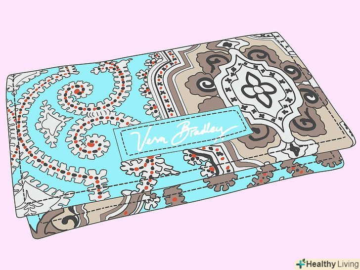 Пошукайте фірмовий знак. як правило, десь на сумці повинен бути фірмовий знак «Vera Bradley». Зазвичай, це невелика смужка. У кожного шаблону "Vera Bradley", звичайно, є свій малюнок і декоративні смужки, які є іншою варіацією цього малюнка. Найчастіше саме тут ви можете виявити фірмовий знак «Vera Bradley».