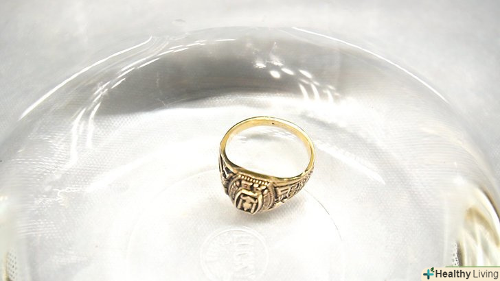 - Замочіть кільце в розчині нашатирного спирту. для розм'якшення бруду і пилу опустіть кільце на 20 хвилин в суміш однієї склянки (200 мл) теплої води і 1/4 склянки (50 мл) нашатирного спирту. [4]
