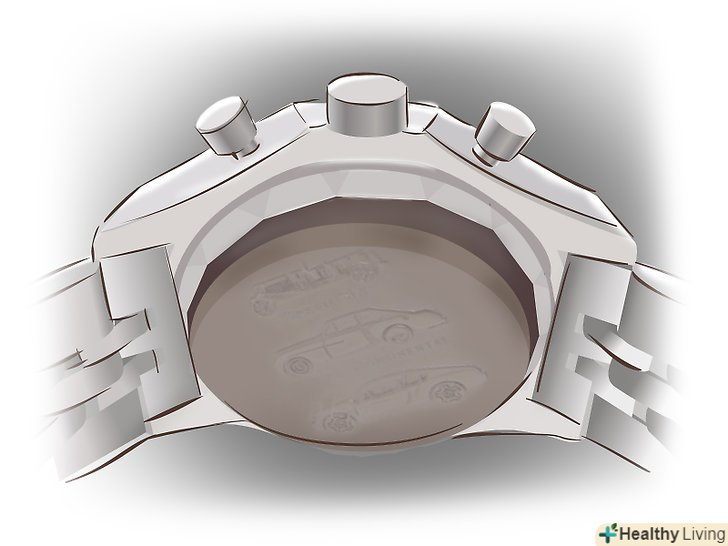Шукайте маркування.- Breitling зазвичай штампує ім'я виробника на задній смузі зліва. У підроблених годинниках Breitling, ця позначка може бути відсутнім повністю. В інших випадках вона може бути неправильною, мати нечітке зображення або бути нерозбірливою.