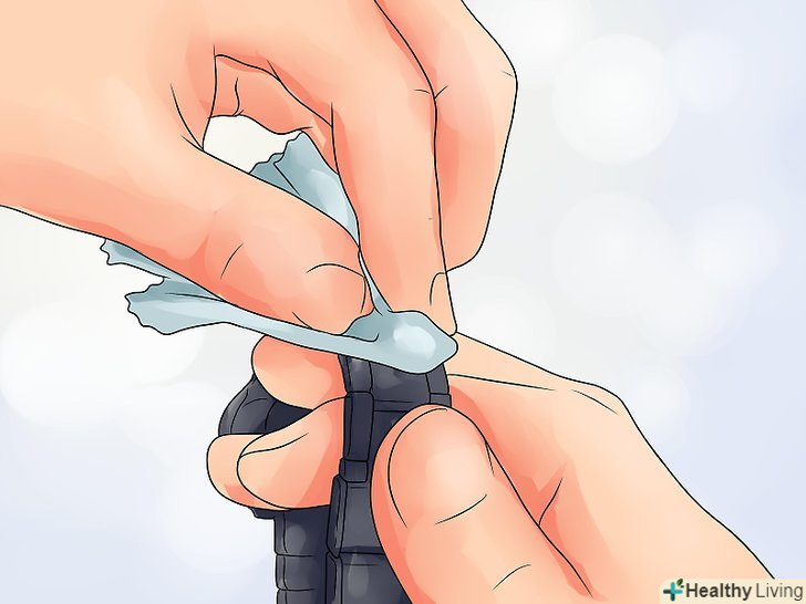 Доглядайте за ремінцем годинника. ремінці можуть бути виготовлені з різних видів матеріалів: зі шкіри, металу, каучуку і так далі. Матеріал залежить від дизайну і призначення годин. Каучукові ремінці, наприклад, є типовими для водонепроникних (водолазних) годин, в яких люди плавають і пірнають. Регулярно перевіряйте каучукові (гумові) ремінці на наявність в них тріщин і розривів, щоб вчасно замінити ремінець. Вода, парфуми та інші рідини негативно позначаються на стані шкіряних ремінців. Час від часу змащуйте шкіряний ремінець маслом, щоб поліпшити зовнішній вигляд ремінця і продовжити термін його служби. Металеві ремінці поліруйте за допомогою м'якої тканини. [17]