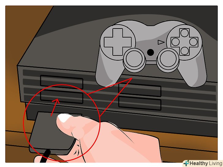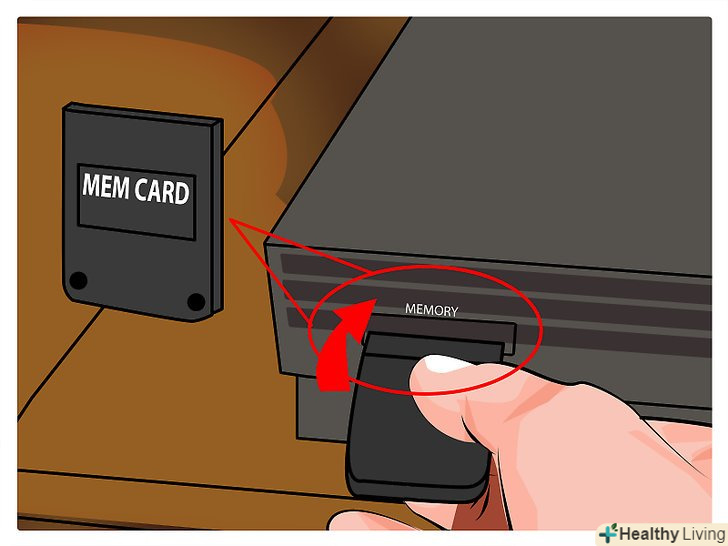 Вставте карту пам'яті (необов'язково).- Якщо ви хочете зберігати проходження ігор, вам знадобиться вставити карту пам'яті). Офіційні карти пам'яті мають розмір 8 МБ, що цілком достатньо для збереження проходження великої кількості ігор. Ви можете придбати сторонні карти більшого розміру, але у них більше шансів вийти з ладу, і вони можуть пошкодити збережені дані. Втім, існують і офіційні карти пам'яті більшого розміру, на 16 або 32 МБ. Можна також використовувати зовнішній жорсткий диск замість карти пам'яті, однак карта знадобиться, щоб встановити програмне забезпечення для жорсткого диска.
