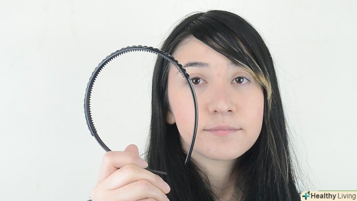 - Якщо у вас чубчик, залиште волосся розпущеним і надіньте ободок так, щоб він був відразу ззаду лінії чубчика. [2]