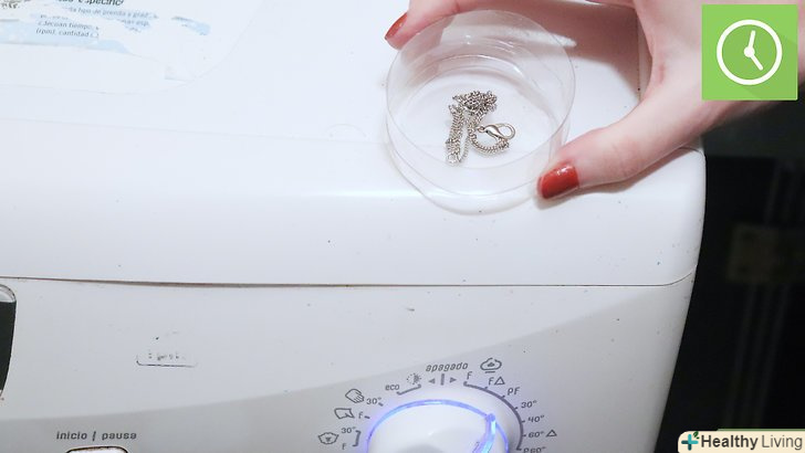 Послабте вузол. помістіть прикраса в невелику ємність і поставте на вібруючий предмет (наприклад, пральну машину). [21] залиште на кілька хвилин.- Вібрації зрушують ланки і сприяють ослабленню вузла.