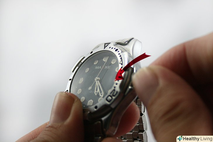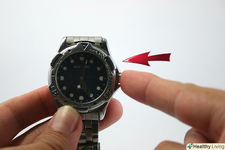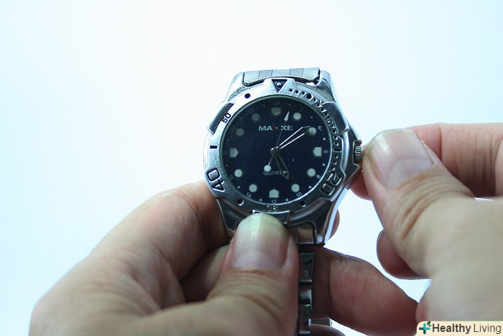 Тримайте годинник в лівій руці лицьовою стороною вгору. інвертуйте положення годинника, якщо ви лівша.- Заводна головка годинника може мати кілька параметрів, включаючи налаштування для часу, календаря, будильника або часового поясу. Параметри розташовані в маленьких "зарубках", коли ви витягаєте або вставляєте назад заводну головку годинника. Використовуйте метод проб і помилок, щоб намацати зарубки і визначити положення для закладу годин.