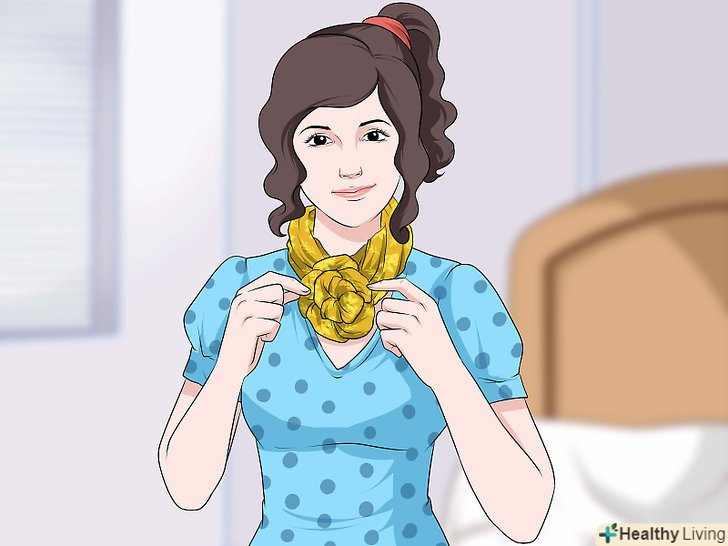 Обв'яжіть шию шарфом. однотонний шарф в поєднанні з сукнею в горошок підкреслять контрастність вашого образу. [11] крім того, в холодну погоду шарф забезпечить вас необхідним теплом. Зав'яжіть шарф за принципом петлі, вузла або обв'яжіть навколо шиї.