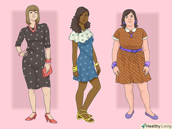 Виберіть аксесуари для волосся. носіть аксесуари для волосся, які добре поєднуються з сукнею в горошок, такі як обручі, стрічки, шарфи для волосся, шпильки і подібні аксесуари. Аксесуари для волосся – це тонкий штрих, який може підкреслити гармонійність вашого образу і красу сукні. [9]