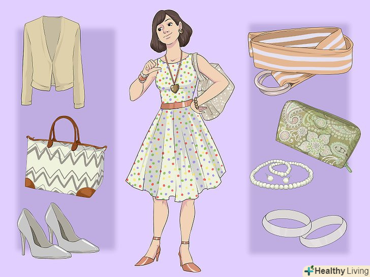 Підбирайте аксесуари нейтральних кольорів, якщо у вас різнобарвне плаття. Якщо у вас яскраве різнобарвне плаття в горошок, вибирайте аксесуари нейтральних кольорів. Поєднання різнобарвного сукні з яскравими аксесуарами не найкращий варіант. Ваш наряд буде занадто помітним і позбавленим смаку.