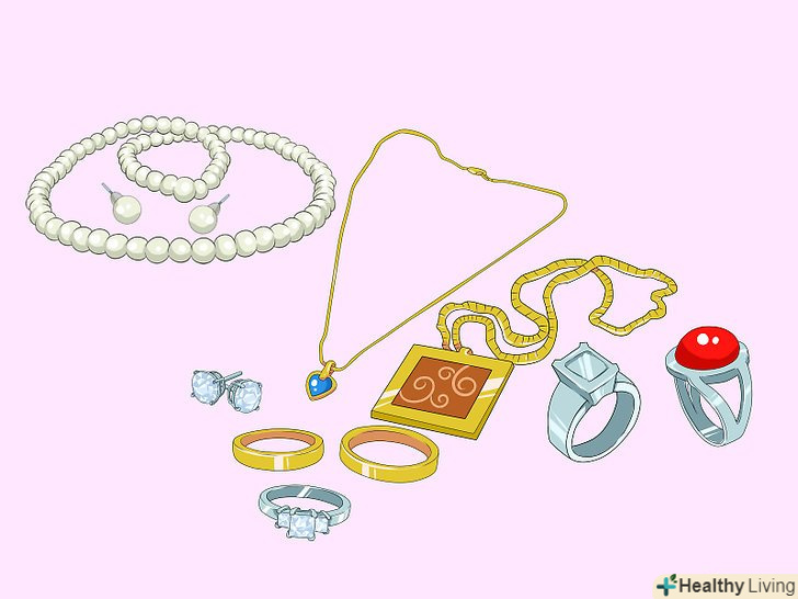 Використовуйте прості прикраси. ви можете прикрасити своє плаття в горошок ювелірними прикрасами. Однак не перестарайтеся. Інакше прикраси будуть відводити увагу від вашого сукні. Тому вибирайте прості прикраси. Не носіть занадто багато прикрас. Якщо ви носите плаття в горошок, пам'ятайте, що це не час для великих сережок або намиста. [4]- Перли прекрасно поєднується з сукнею в горошок оскільки він є продовженням обраного візерунка.