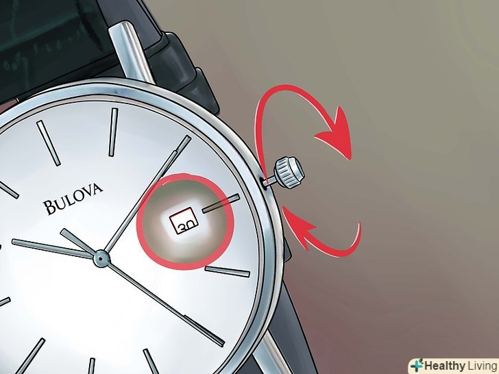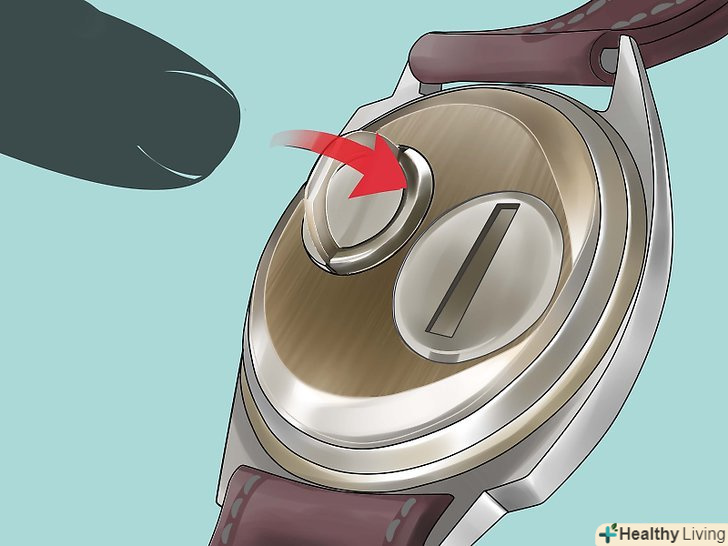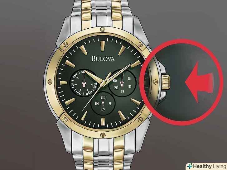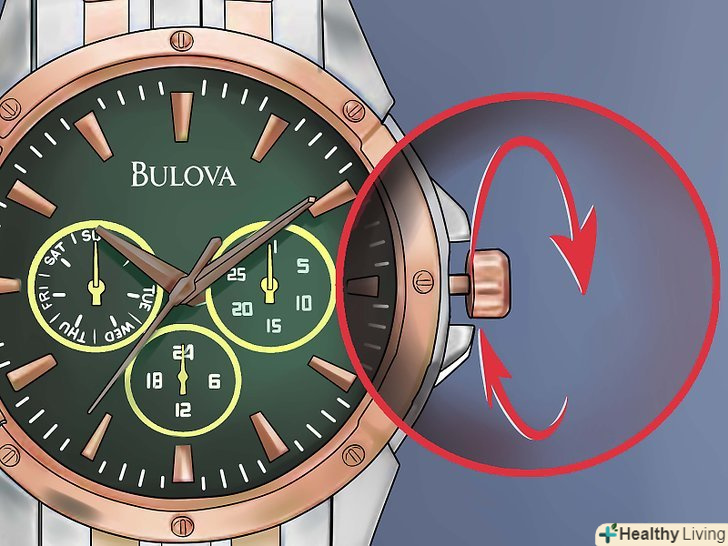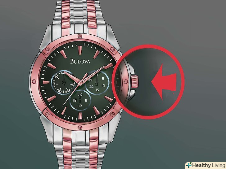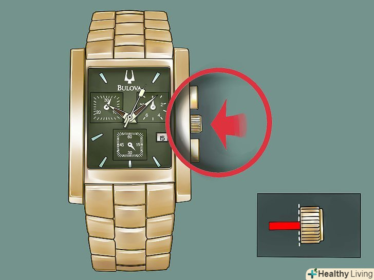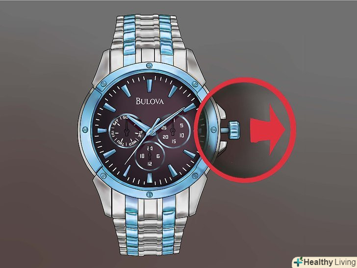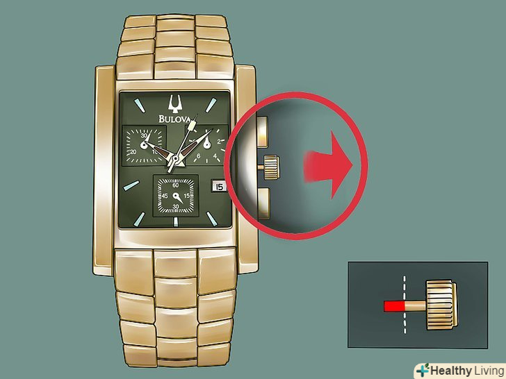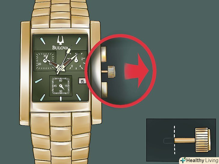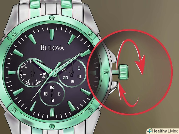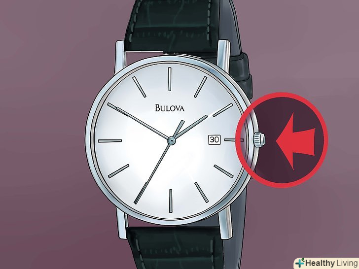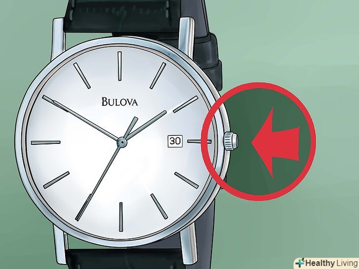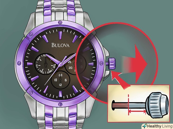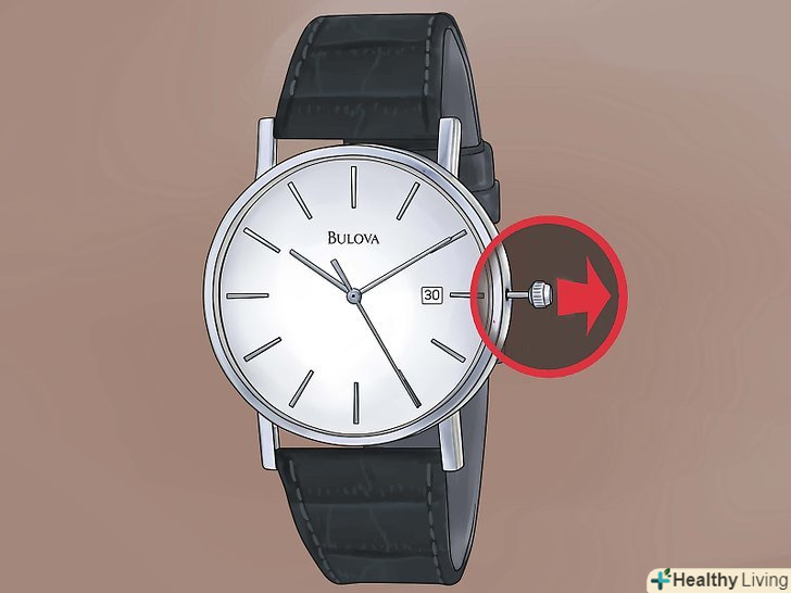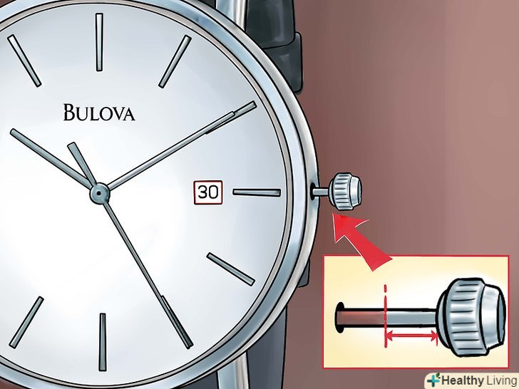 Витягніть заводну головку. пальцями або нігтями витягніть з годинника заводну головку.- Перед тим як витягнути головку, дочекайтеся, коли секундна стрілка дійде до позначки о 12 годині.