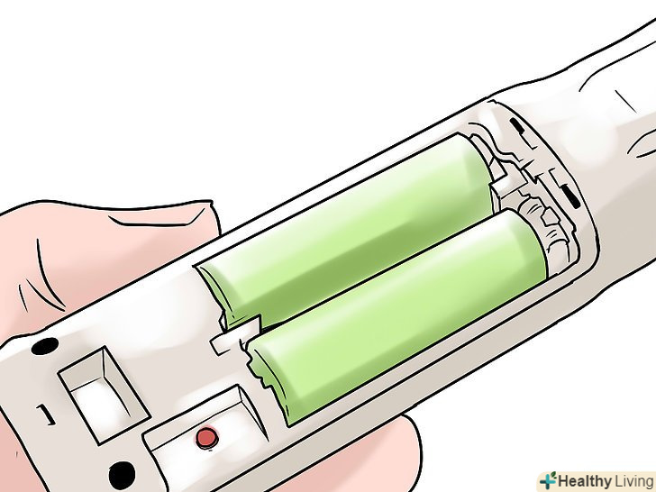 Приберіть покриття батарейок з задньої частини Wii контролера, який ви хочете синхронізувати.якщо там немає батарейок (або вони порожні), покладіть туди нові.