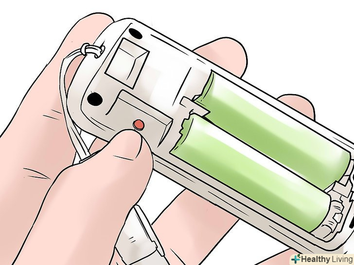 Натисніть кнопку "SYNC" під батарейками на Wii контролері.- Використовуйте кінчик ручки або скріпки, якщо необхідно. Не обов'язково тримати кнопку натиснутою, вам вистачить швидко на неї натиснути і відпустити.