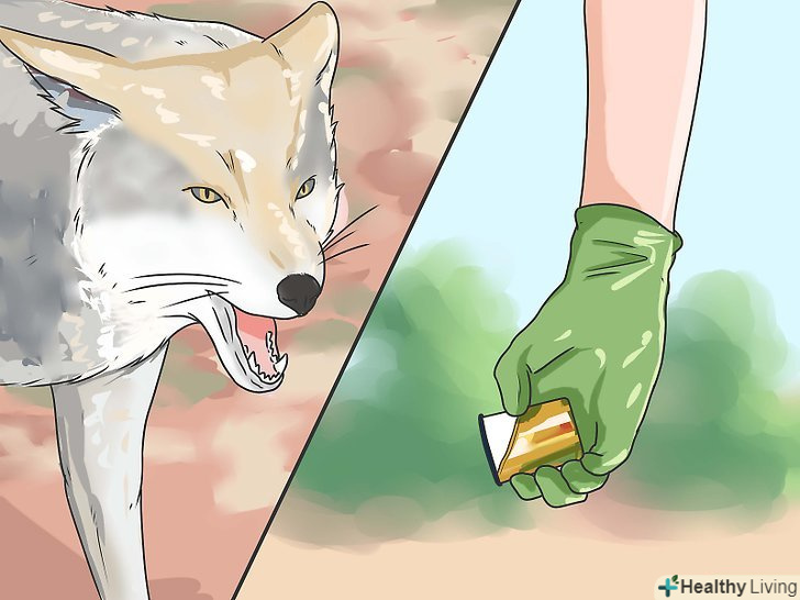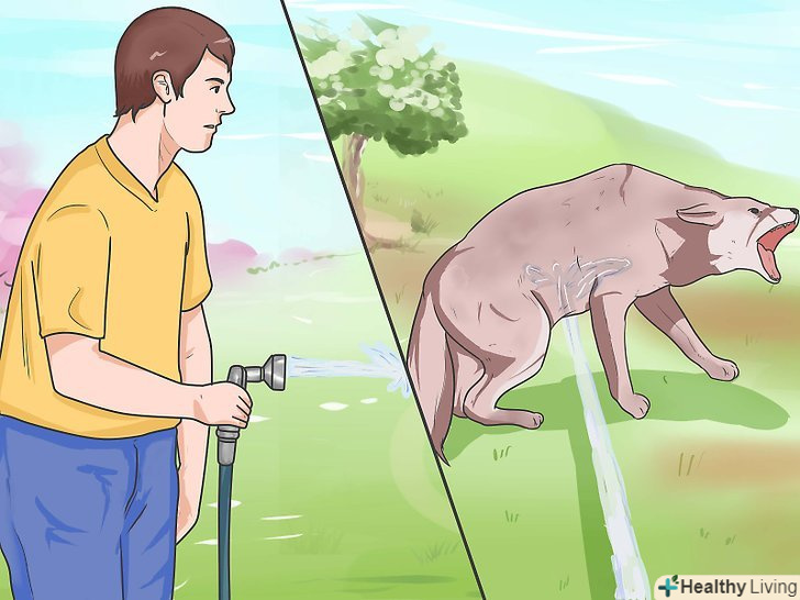 Використовуйте негативне посилення елемента несподіванки, якщо трапиться так, що койот забереться у ваш двір або кемпінг. крім шуму кроків ви можете використовувати і інші прийоми, коли виявите койота у вашій місцевості. Койоти не люблять незвичні сигнали впливу, і спочатку їх може відлякати тактика залякування. [10] у будь-якому випадку, ви ніколи не повинні тримати з койотом зоровий контакт, повертатися до нього спиною або тікати від нього, так як це буде сприйнято як сигнал агресії або викличе бажання переслідувати і нападати. Якщо ви хочете піти, робіть це спокійно або спробуйте одну з цих тактик залякування:- Облийте койота водою зі шланга.