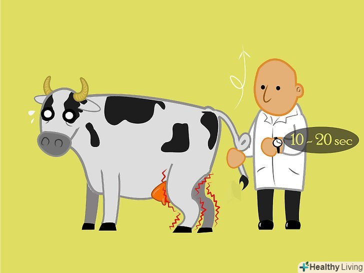 - Тільки робіть це протягом 10-20 секунд. Якщо корова після 20 секунд не встане – приберіть свої руки і дайте їй дихати.