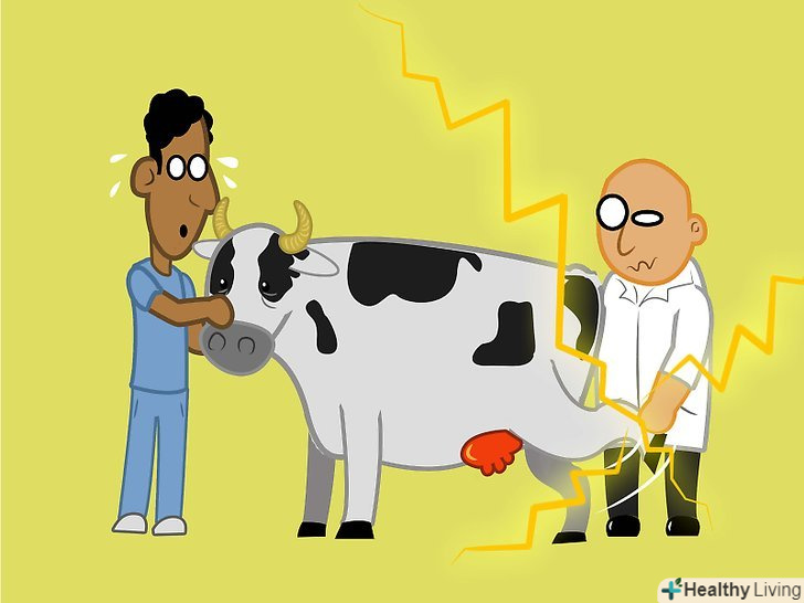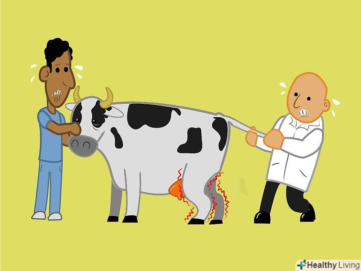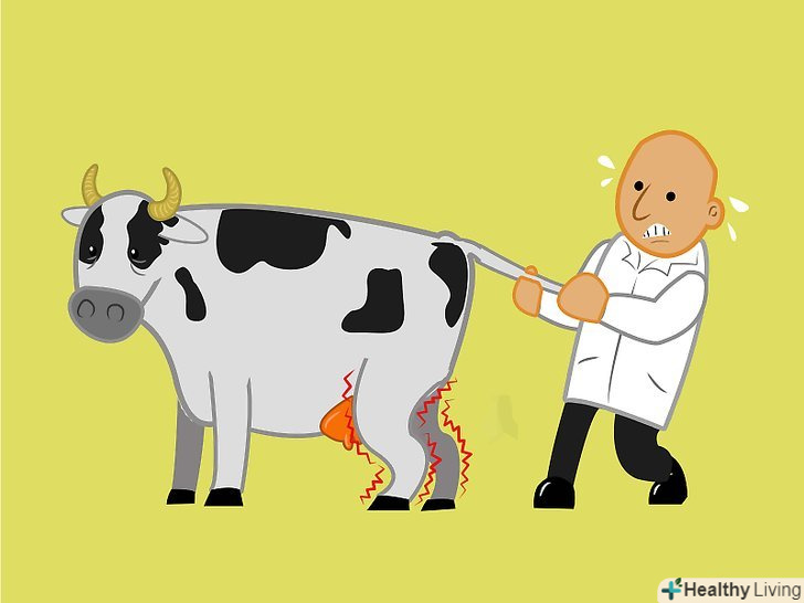 Зв'яжіться з ветеринаром, який займається лікуванням великих видів тварин, щоб він встановив стан вашої корови і визначив, чи дійсно причина в паралічі нерва, а не в чому-небудь іншому – більш серйозному. Корова може падати на задні ноги не тільки від паралічу сідничного або нерва попереково-крижового сплетення, але і від перелому стегнової кістки або вивиху тазостегнового суглоба. Перелом стегнової кістки може бути досить важким, тому, якщо ви спробуєте підняти корову самостійно, без консультації ветеринара, то ви тільки можете нашкодити їй. По-перше, кістки можуть розірвати стегнову артерію (головну артерію, яка проходить по всій довжині зовнішньої сторони задніх ніг корови), і тварина просто закінчиться кров'ю за лічені хвилини. По-друге, корова може падати на задні ноги через молочну лихоманку. Ця хвороба може запросто її вбити, якщо ви своєчасно не вживете необхідних заходів.