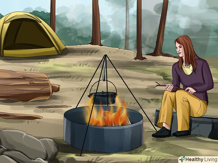 - Якщо ви змушені зупинитися в лісовій глушині, закрийте всю їжу в міцному контейнері і підвісьте його на відстані 3 метри від землі. Між контейнером і іншими гілками і стовбуром дерева повинно бути не менше 1,2 метра. [21]