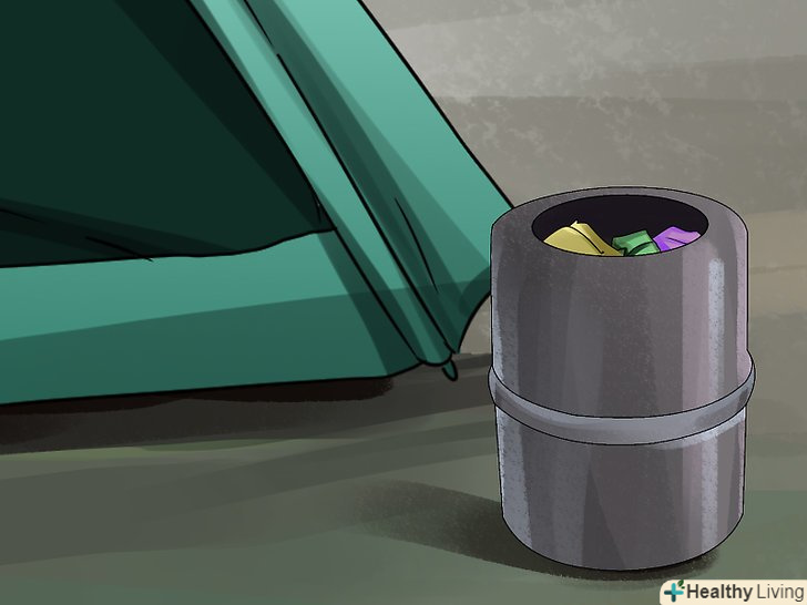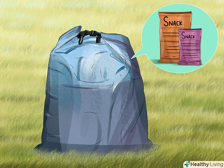 - Якщо ви розбили табір в глушині, підвісьте пакети з їжею і сміттям на дерево. Повісьте їх на відстані хоча б 3 метри від землі, подалі від стовбура і сусідніх гілок.