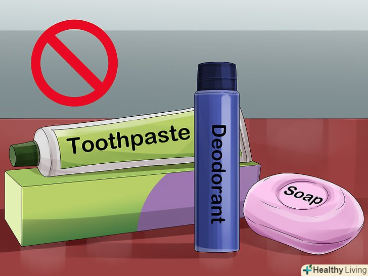 Сховайте подалі предмети з сильним запахом. ведмедів приваблює не тільки запах їжі. Тварина здатні зацікавити майже всі сильні запахи, в тому числі запах косметики і мила. Сховайте мило, дезодорант, засоби від комах і зубну пасту там же, де ви тримаєте продукти. [22]- Ще краще залишити всі предмети з сильним запахом будинку.