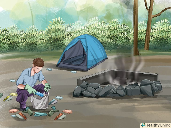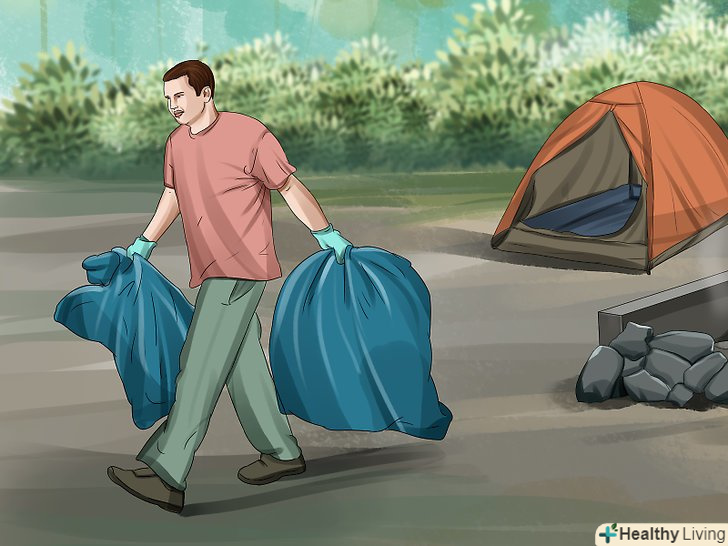 Очищайте те місце, де ви готували їжу. Не залишайте біля табору їжу, так як вона може залучити ведмедів. Зберіть в пакет всі залишки їжі навколо свого табору. [23]- Мийте використаний посуд теплою водою з милом, після чого обполіскуйте її чистою водою.