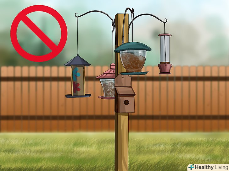 У весняні та літні місяці прибирайте пташині годівниці. Ведмеді всеїдні і люблять поласувати насінням. Крім того, вони непогано лазять по деревах. Зголоднілий після зимової сплячки ведмідь цілком може навідатися на вашу ділянку в пошуках чого-небудь смачного. [3]- Якщо ви хочете залишити пташині годівниці, підвішуйте їх досить високо. Розміщуйте годівниці на відстані не менше 3 метрів від землі, так щоб по сусідству з ними не було дерев. Не забувайте також регулярно очищати від впали насіння землю під годівницею.