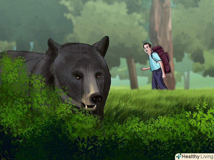 Якщо ви побачите далеко ведмедя, постарайтеся обійти його стороною. повільно відступите назад, продовжуючи стежити за твариною. Виберіть інший маршрут або просто поверніться по тому шляху, по якому ви прийшли. Залиште ведмедя в спокої, і він не буде переслідувати вас. [28]- У будь-якому випадку постарайтеся не наближатися до ведмедя. Якщо ви помітите звіра, покиньте небезпечну територію.