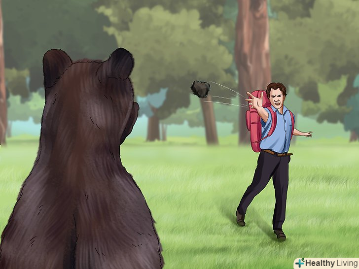 Чиніть опір, якщо ведмідь продовжує атакувати вас. якщо на звіра не подіяло те, що ви прикинулися мертвим, і він не відступив протягом декількох хвилин, прийшов час дати відсіч. Бийте ведмедя руками і ногами, кидайте в нього камені, використовуйте палиці і все, що виявиться під рукою. Можливо, вам вдасться відлякати його. [34]