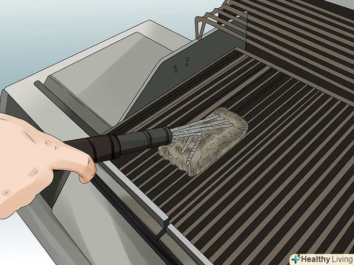 ОчищайтеГриль після кожного використання. Обдавайте гриль полум'ям, щоб спалити залишки їжі. Мийте гриль щіткою, поки він не охолов. Коли гриль стане теплим і до нього можна буде доторкнутися, помийте його жорсткою щіткою, засобом для миття посуду і теплою водою, щоб видалити жир. Приділяйте особливу увагу решітці і ділянці під нею. [9]- Залишки їжі, особливо стеклий на піддон жир, здатні залучити ведмедя. Намагайтеся тримати гриль в недоступному для ведмедя місці. [10]