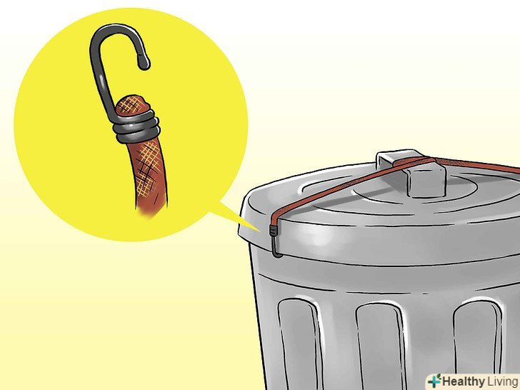 - Прив'яжіть кришку до відра мотузкою або шнуром, обв'язавши їх навколо ручок. Обкрутивши шнур навколо відра з двох сторін, ви затримаєте більшість докучливих єнотів. [3]